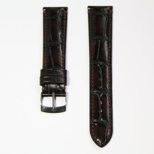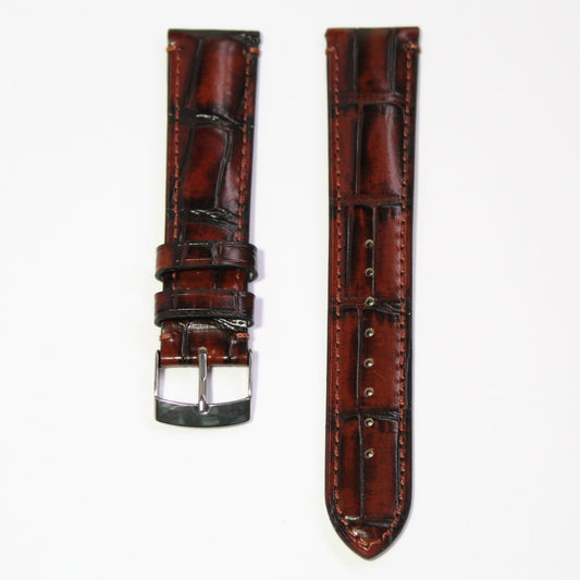 Alligator Grain Panerai Watch Strap in Brown - Contrast Stitch